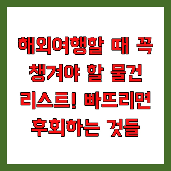 드디어 꿈에 그리던 해외여행! 설렘 가득한 여행 계획 세우고 계신가요? 하지만 꼼꼼한 짐 싸기는 여행의 시작이자, 성공적인 여행을 위한 가장 중요한 첫걸음 입니다. 놓치기 쉬운 물건 하나 때문에 즐거운 여행이 엉망이 될 수도 있기 때문입니다. "해외여행할 때 꼭 챙겨야 할 물건 리스트"를 통해 필수 여행 준비물 부터 놓치기 쉬운 중요 물품 까지 완벽하게 준비하는 방법을 알려드리겠습니다. 여행 중 건강 관리 용품과 편리한 여행을 위한 꿀팁 아이템까지, 후회 없는 여행을 위한 모든 것 을 담았습니다. 이 글을 통해 여러분의 소중한 여행을 더욱 풍요롭고 안전하게 만들어보세요! 필수 여행 준비물자, 드디어 꿈에 그리던 해외여행! 설렘 가득한 마음으로 짐을 싸려는데 뭘 챙겨야 할지 ..